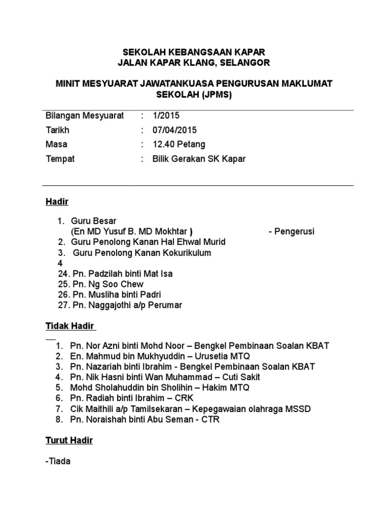 Minit Mesyuarat Jpms Kali Ke 2 Pdf